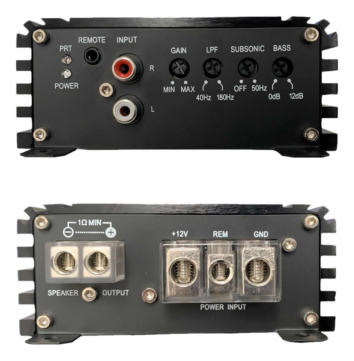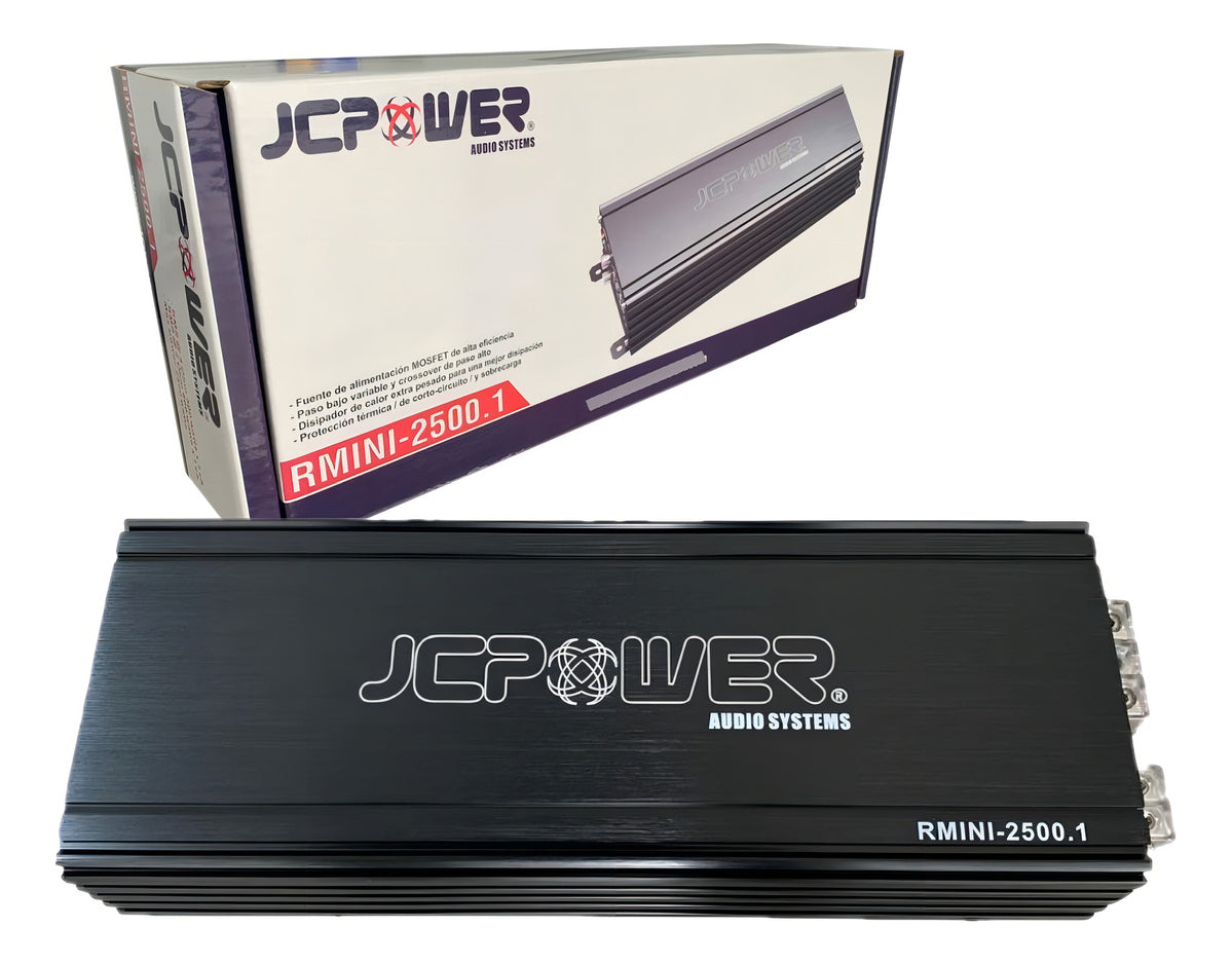 Amplificador Jc Power RMINI2500.1 2400w Max Clase D 1 Canal::: QUE INCLUYE LA CAJA :::-Amplificador de 1 canal Jc Power RMINI-2500.1-Controlador de Bajos-Manual de Usuario-Producto Nuevo::: ESPECIFICACIONES :::-Dimensiones: 30.5 cm x 11.0 cm x 4.5 cm1 CanalRMS / 4ohm : 500 W x 1 CHRMS / 2ohm : 800 W x 1 CHRMS / 1ohm : 1200 W x 1 CHPotencia Máxima : 2400 WattsTHD <= 1%Respuesta de Frecuencia (+/- 1 dB) 20 Hz - 180 HzRelación señal-ruido >90 dBSensibilidad 0.2-3VFuente de alimentación MOSFET de alta eficienciaCircuito estable de 1ohmPaso bajo variable y crossover de paso altoDisipador de calor extra pesado para una mejor disipaciónProtección térmica / de corto-circuito / y sobrecarga