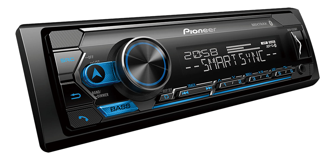 Unidad principal de medios de 1 DIN-Caratula fija-FM/AUX/USB/BT-EQ de 5 bandas-Lee archivos FLAC MP3 WAV WMA-50w X4-Manos libres para llamadas telefonicas-Microfono externo-1 salida de RCA-Programable control de dispositivos android, iphone de manera directa y spotify-Lista para controles de volante-Compatible con la aplicacion pioneer smartsync para ajustes desde tu celular