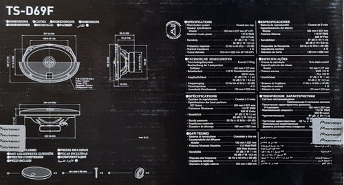 BOCINAS PIONEER 6X9 TS-D69F SERIE PREMIUM DE 2 VIAS 330 WATTS.Sumérjase en un entorno de sonido suave y abierto con los altavoces Pioneer TS-D Series. Basado en el reconocido concepto de sonido “abierto y suave” de Pioneer, esta gama de productos proporciona un entorno de sonido abierto y una transición suave en la respuesta del conductor, lo que permite lograr una experiencia de inmersión basada en un sonido para vehículos definitivo.Además de las características de sonido, el tweeter de la gama TS-D Series puede girarse sobre el coaxial, lo que permite lograr la mejor direccionalidad del sonido y garantiza diferentes opciones de instalación sencillas en el vehículo.La fibra de aramida entrelazada con el material IMPPTM de la cúpula es ligera, rígida y es resistente a las vibraciones, lo que permite obtener un sonido suave, transparente y repleto de bajos lineales. Cada modelo de la gama Pioneer TS-D Series también garantiza una instalación flexible.Cada elemento del TS-D69F se ha diseñado para proporcionarle una experiencia de sonido de alta calidad, natural, potente, con inmersión completa y un nivel de detalle excepcional.Disfrute de un mejor sonido con el Pioneer TS-D69F. Este sistema de altavoces coaxiales de 2 vías y 153 x 222 mm proporciona hasta 330 W de potencia máxima y 110 W de potencia nominal.Durante los notables 80 años de Pioneer, nuestra tecnología de altavoces ha alcanzado límites increíbles de calidad de reproducción de sonido, con un sólido diseño que solo Pioneer puede proporcionar. Pioneer diseña, perfecciona y fabrica cada altavoz Pioneer internamente, para conseguir exactamente el rendimiento y los estándares de calidad de Pioneer. Por eso tenemos el orgullo de denominar a nuestras últimas series Z y D altavoces para automóvil de “alto rendimiento”. Pioneer se ha comprometido a reproducir la música en su forma más pura, y esto solo puede conseguirse si los altavoces están correctamente instalados para aprovechar al máximo su rendimiento en cada vehículo específico. Para ello, Pioneer cuenta con un equipo de expertos profesionales en toda Europa con los conocimientos, la experiencia y la pasión necesarios para poder instalar las series Z y D de Pioneer, y ofrecerle la mejor experiencia de audio posible. Estos socios de Pioneer pueden vender e instalar las series Pioneer Z y D. No se limite a escuchar la música, SIÉNTALA MÁS.EspecificacionesOpen & SmoothTMOPEN and SMOOTH ofrece una respuesta de frecuencia suave y un entorno acústico expansivo.PERI Pioneer European Reference InstallerPERI Pioneer European Reference InstallerPioneer cuenta con un equipo de profesionales expertos en toda Europa que tienen los conocimientos, la experiencia y la pasión necesarios para poder vender e instalar las series Z y D de Pioneer.Especificaciones completasTodas las especificacionesTamaño 6' x 9'Potencia de entrada máxima 330 WPotencia de entrada nominal 110 WRespuesta de frecuencias 32 - 42.000Sensibilidad 87 dBImpedancia 4Frecuencia de crossover 3500 HzProfundidad del montaje 73 mmAgujero recortado 153 mm x 222 mmMaterial del woofer Cúpula de material IMPP™ entrelazado con fibra de aramidaTipo de bobina de voz 2 capas de alambre circular de cobreTipo de bobina de voz Vidrio ImidaFrecuencia de resonancia más baja (Hz) 55 HzTamaño del tweeter (mm) 26 mmMaterial del tweeter Cúpula flexible de aluminioImanes Woofer: FerritaTweeter: NeodimioPeso 1.12 kgOpen & SmoothTM2-Way ComponentPERI Pioneer European Reference Installer Pioneer cuenta con un equipo de profesionales expertos en toda Europa que tienen los conocimientos, la experiencia y la pasión necesarios para poder vender e instalar las series Z y D de Pioneer.