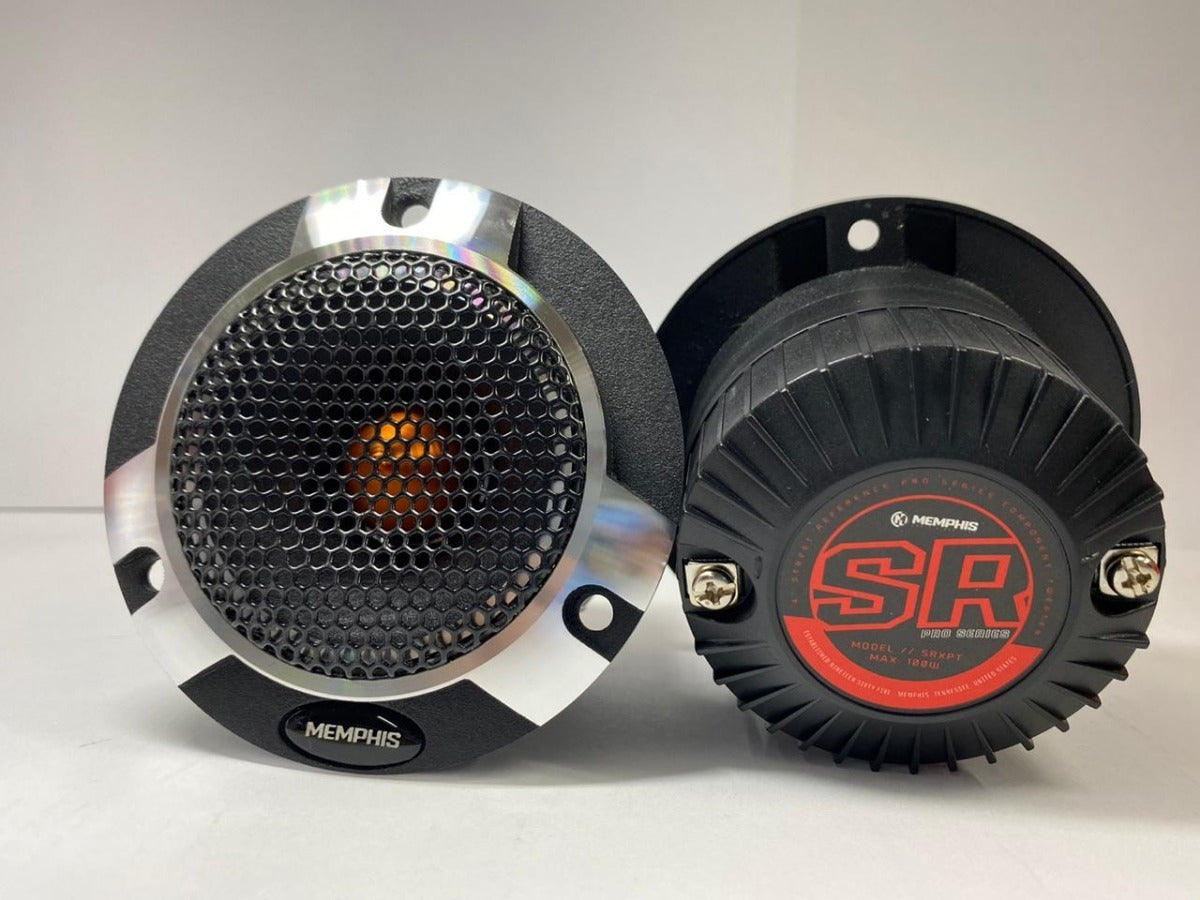 ** Tweeter Memphis SRXPTV2 400 watts Max 4 pulgadas Street Reference PRO **Los altavoces Street Reference Pro proporcionan un rendimiento de audio profesional impresionante de alto volumen y cuentan con tapas antipolvo iluminadas con LED RGB para un toque extra. Memphis ha agregado 2 nuevos altavoces de estilo de audio profesional que incluyen un componente medio de 10 'de alta potencia y un altavoz de bocina coaxial 6x9 de alto rendimiento.Características:* Altavoz de alto SPL de cono de papel tratado ultraligero* Tapa antipolvo retroiluminada con LED RGB* Envolvente de tela tratada para alto SPL* Diseño de acordeón para mayor excursión y salida.* VC de 1,5' para un mayor manejo de potencia* Conector de fase central para mejorar la respuesta de alta frecuencia* Cono de papel ligero y marco de tela tratada* Crossover mylar integrado de 6dB para máxima eficiencia* Bobina móvil de 1,5' en rango medio para manejo de alta potencia* Bocina de 3' de profundidad con diafragma de 1' para salida de alta frecuencia* Par de tweeters profesionales de 4' 100w RMS/200w MAXEspecificaciones:* Tamaño: Tweeter de 4'* RMS/PICO (W): 100/200* Sensibilidad (dB): 98* Profundidad de montaje (IN): 2.44'* Tamaño del imán (OZ): 5.2* Parrilla Incluida: NoContenido:* Tweeters Memphis SRXPTV2* Accesorios de instalación* Manual de usuario